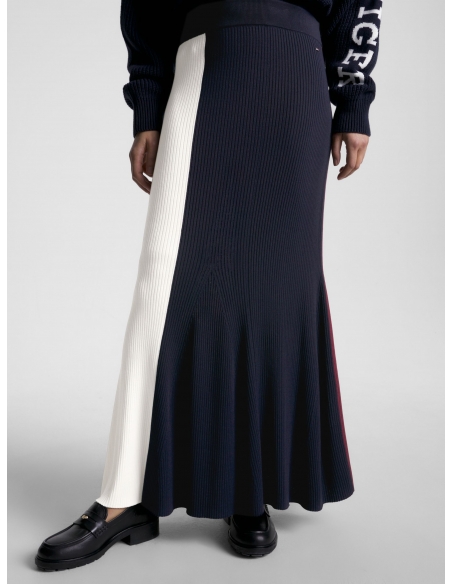 This chic maxi skirt features a breathable modal blend composition, colour-blocked design and all-over ribbed finish for a smart look.
