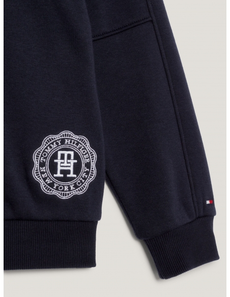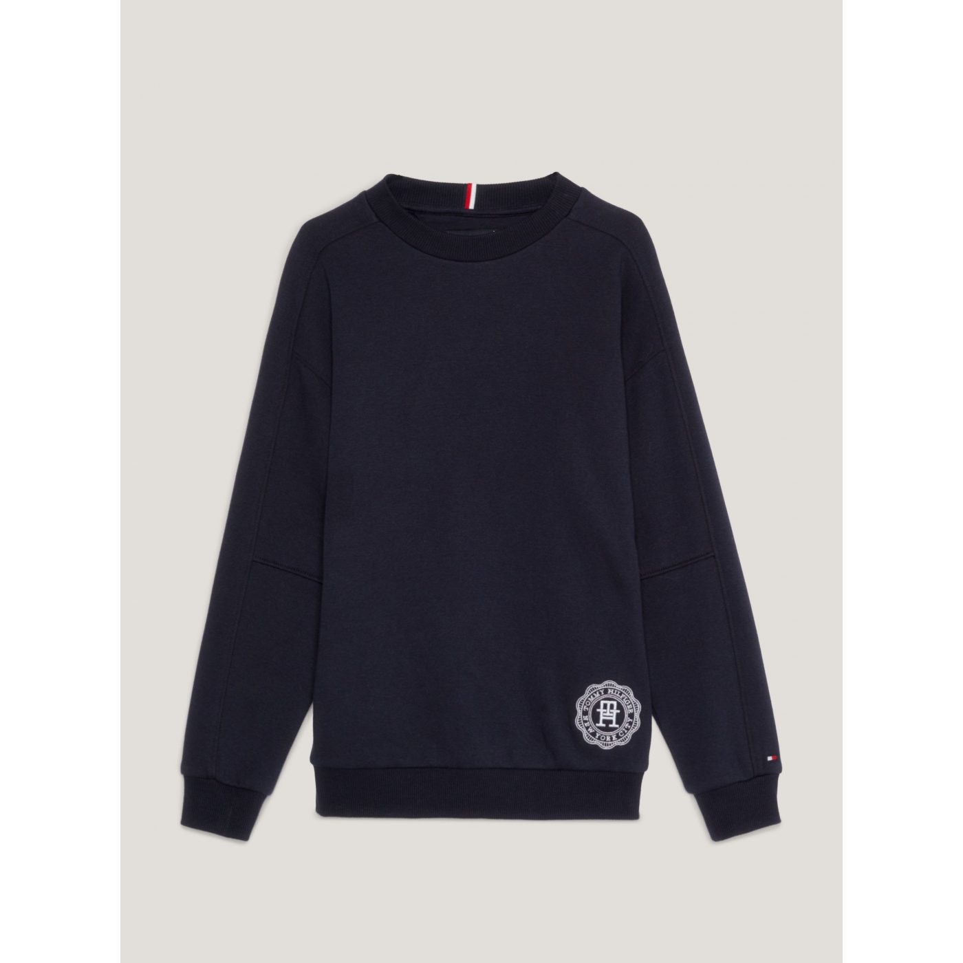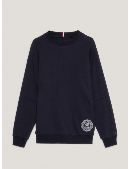 Step up your sweatshirt game with this style, featuring tonal piping on the sleeves and an intricate stamp logo.