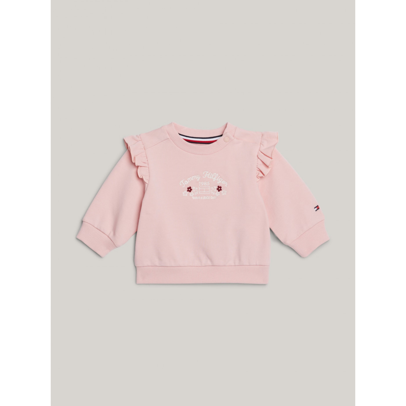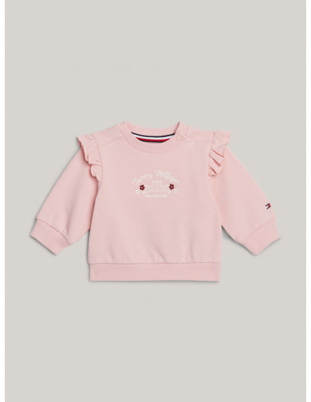 Featuring an embroidered floral logo and ruffle detailing, this comfy sweatshirt is a super-cute take on classic styles.