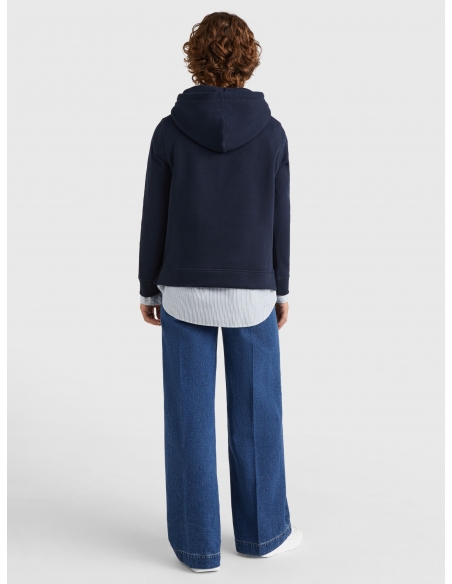 Master the art of laid-back style with this hoody, crafted from cotton-rich fabric and stamped with the iconic Tommy Hilfiger logo.