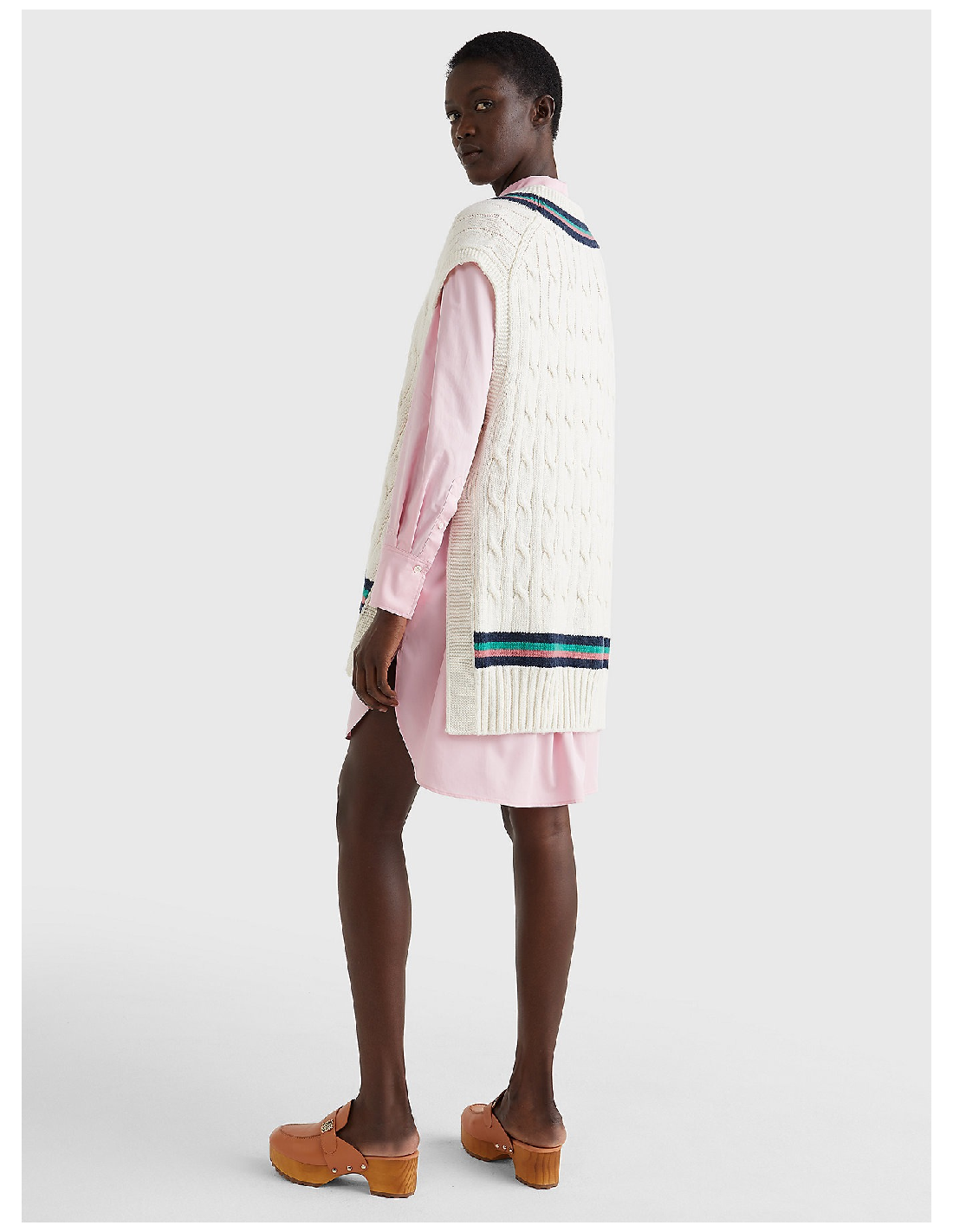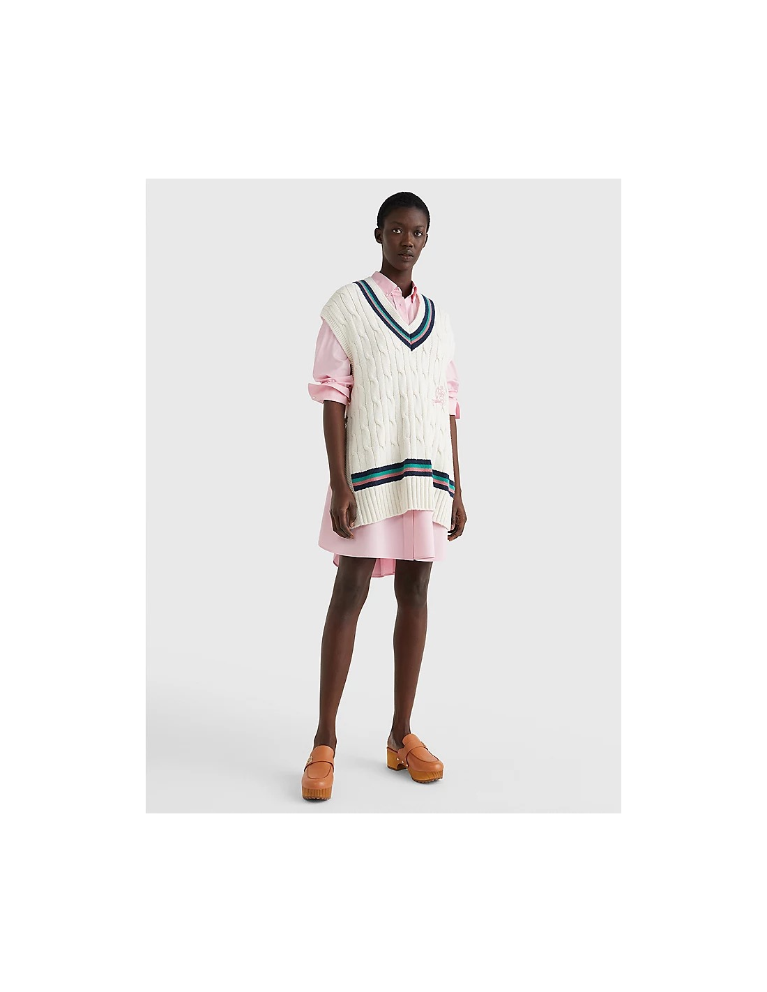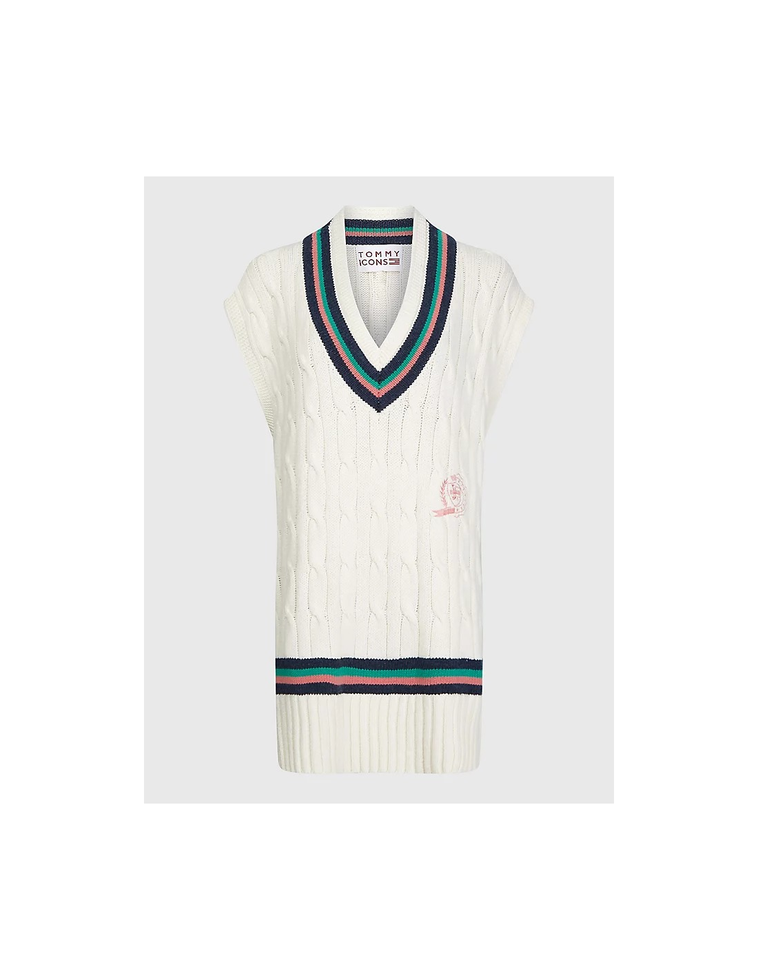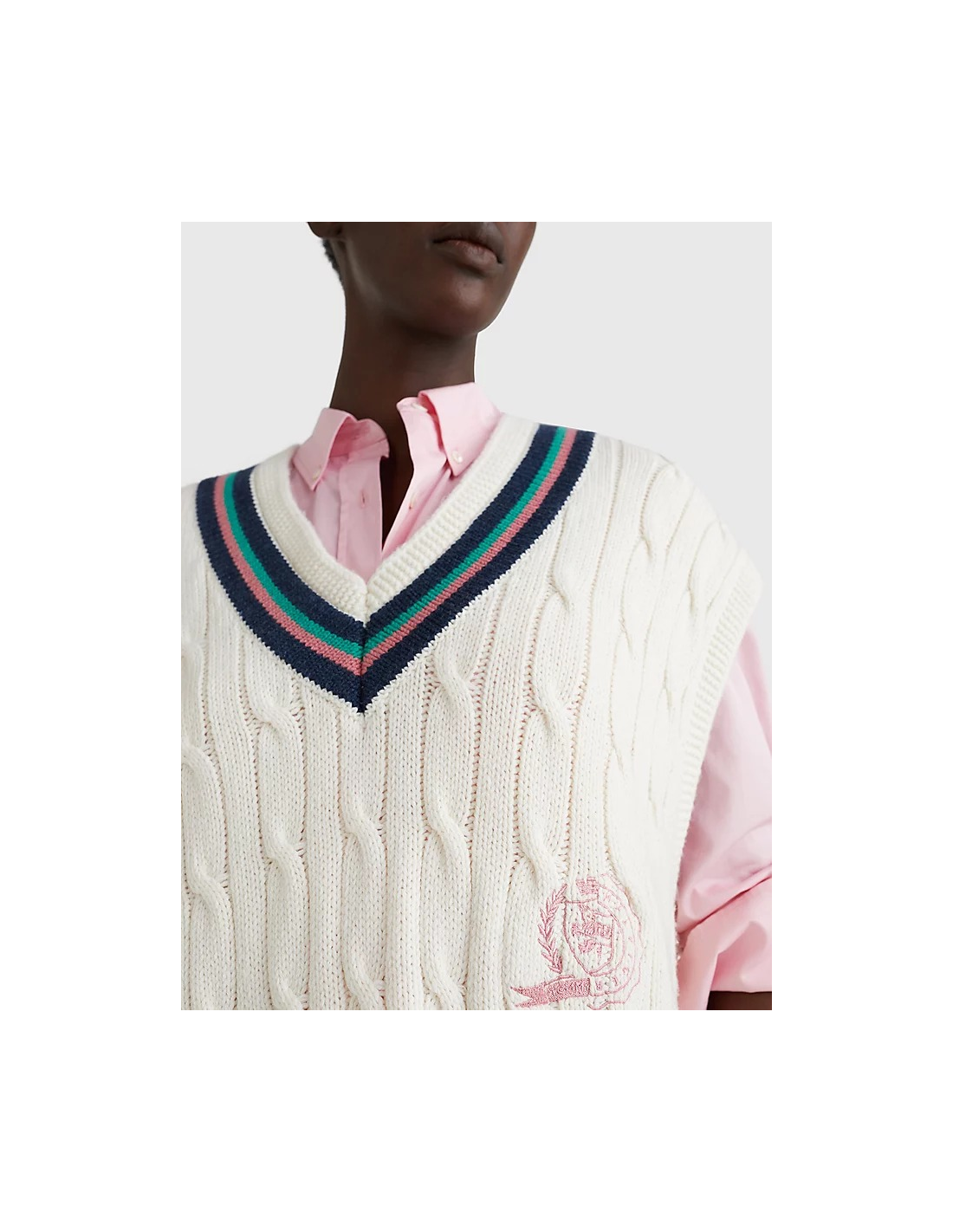 Keep yourself cosy and rock a cricket-inspired look with this wool-blend vest, featuring contrast stripes and a cable-knit finish.