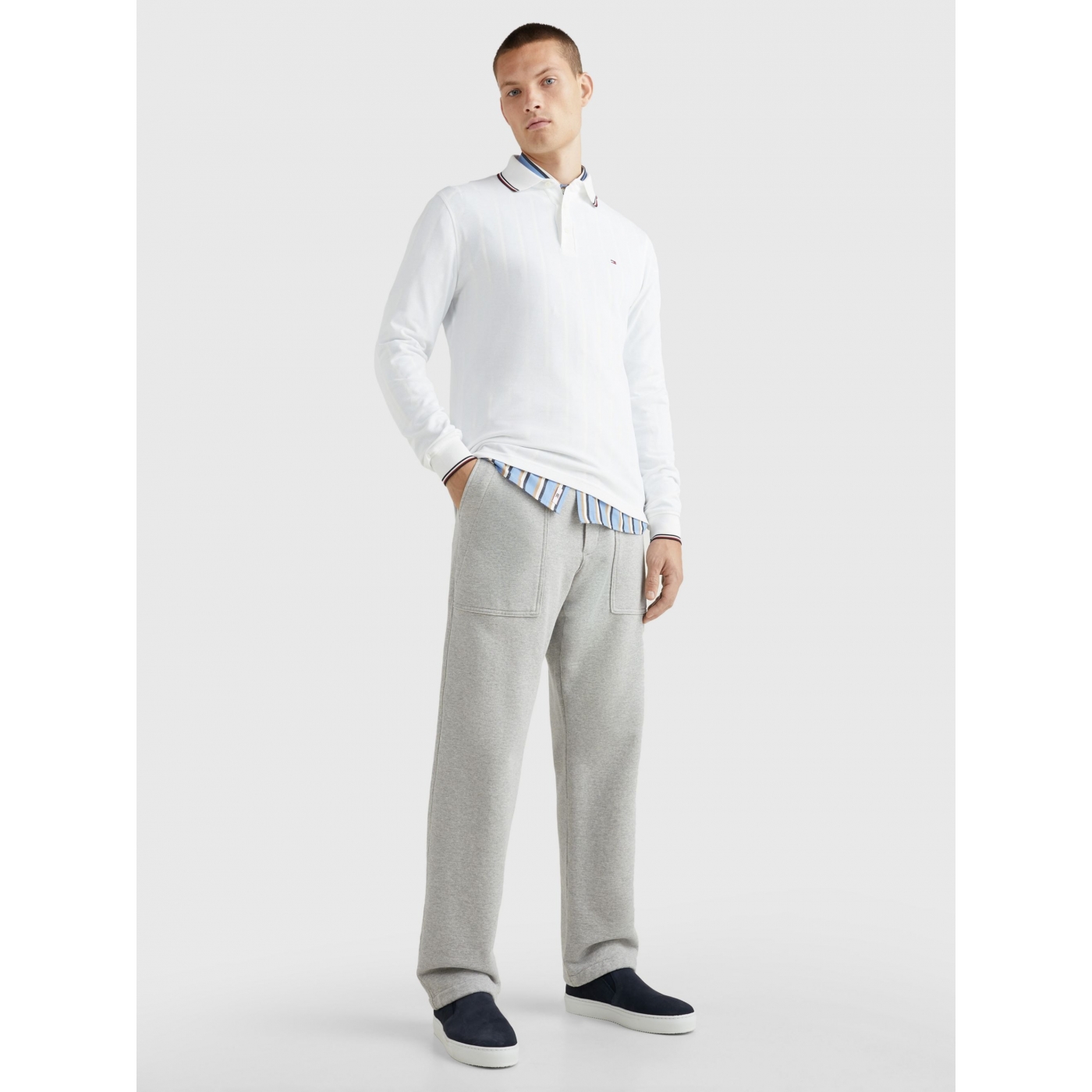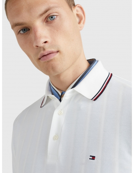 Signature tape tipped collar and cuffs