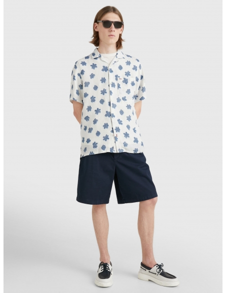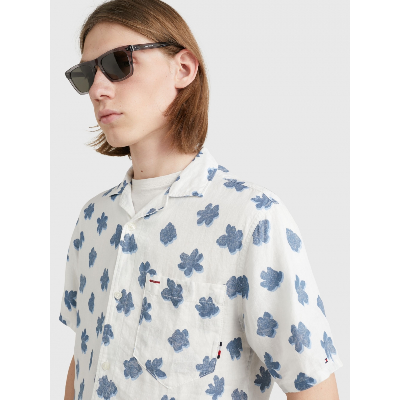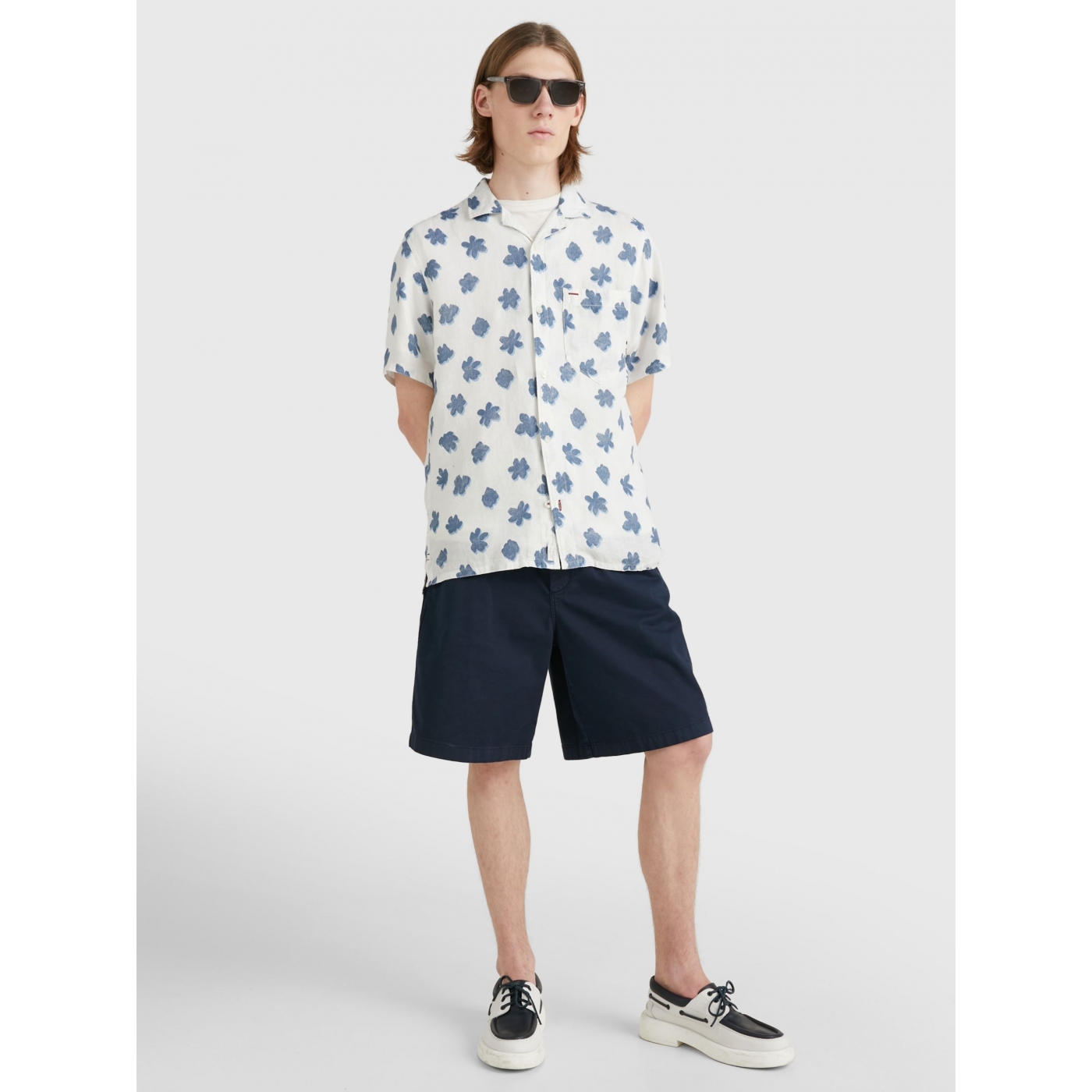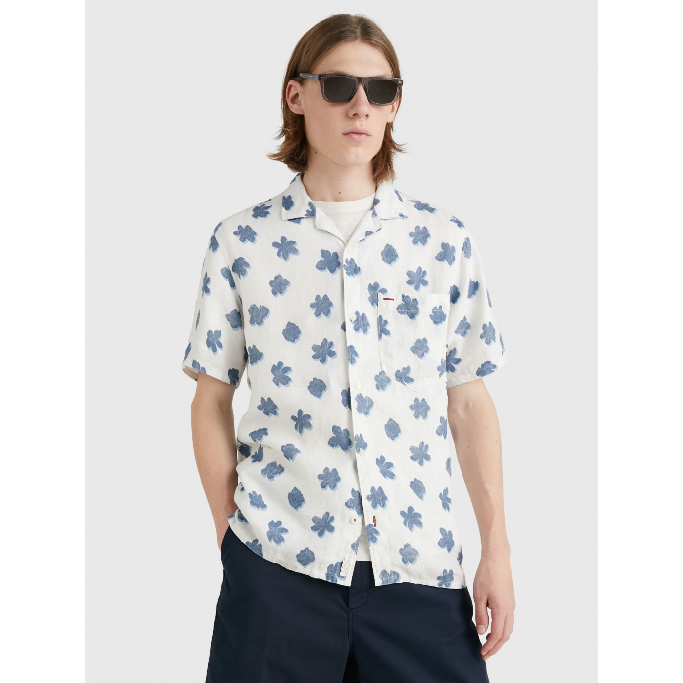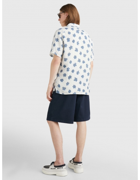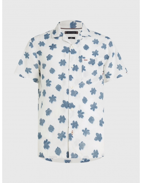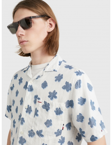 With a relaxed-look bowling collar and all-over floral print, this short-sleeved shirt in airy linen brings getaway vibes to any day.