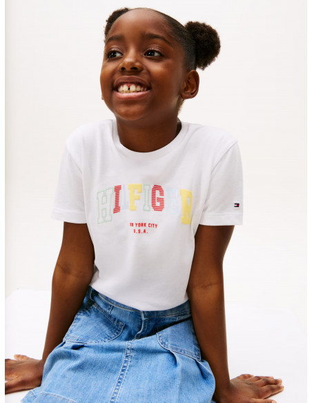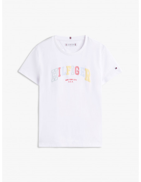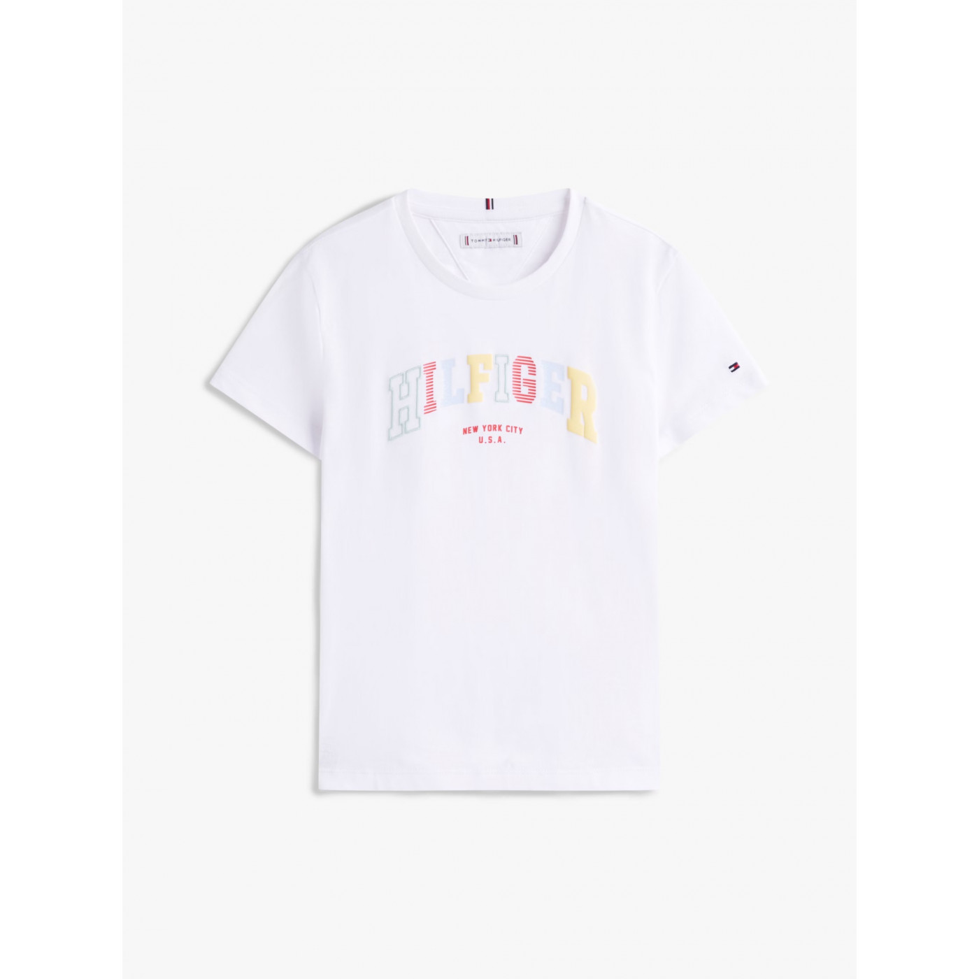 Bring a varsity vibe to looks with this T-shirt, featuring a classic crew neck and a textured logo on the chest.