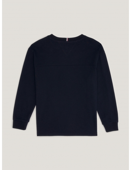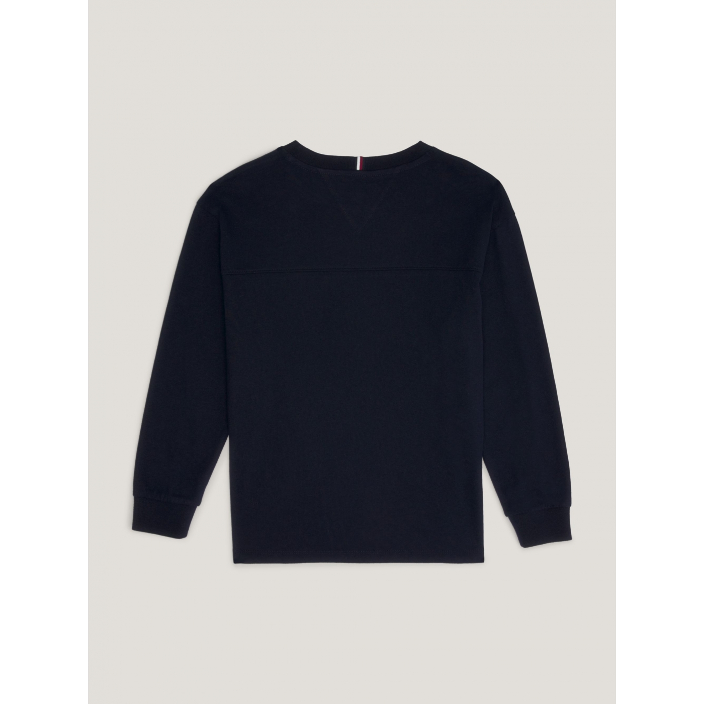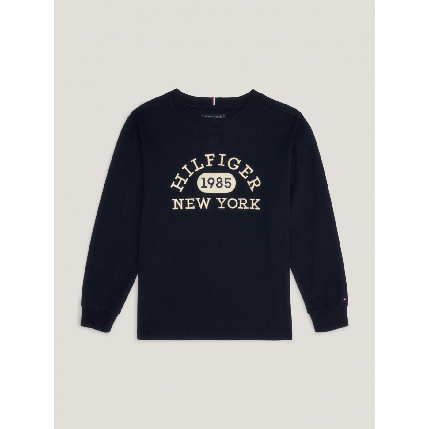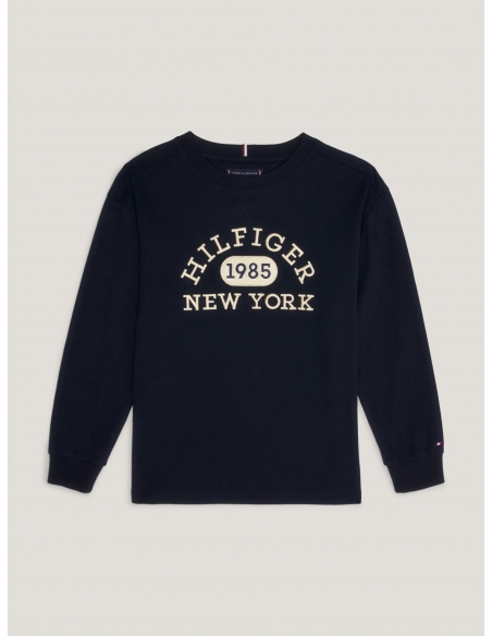 This long-sleeved tee with a bold collegiate-inspired logo on the front is perfect choice for in-between weather days.
