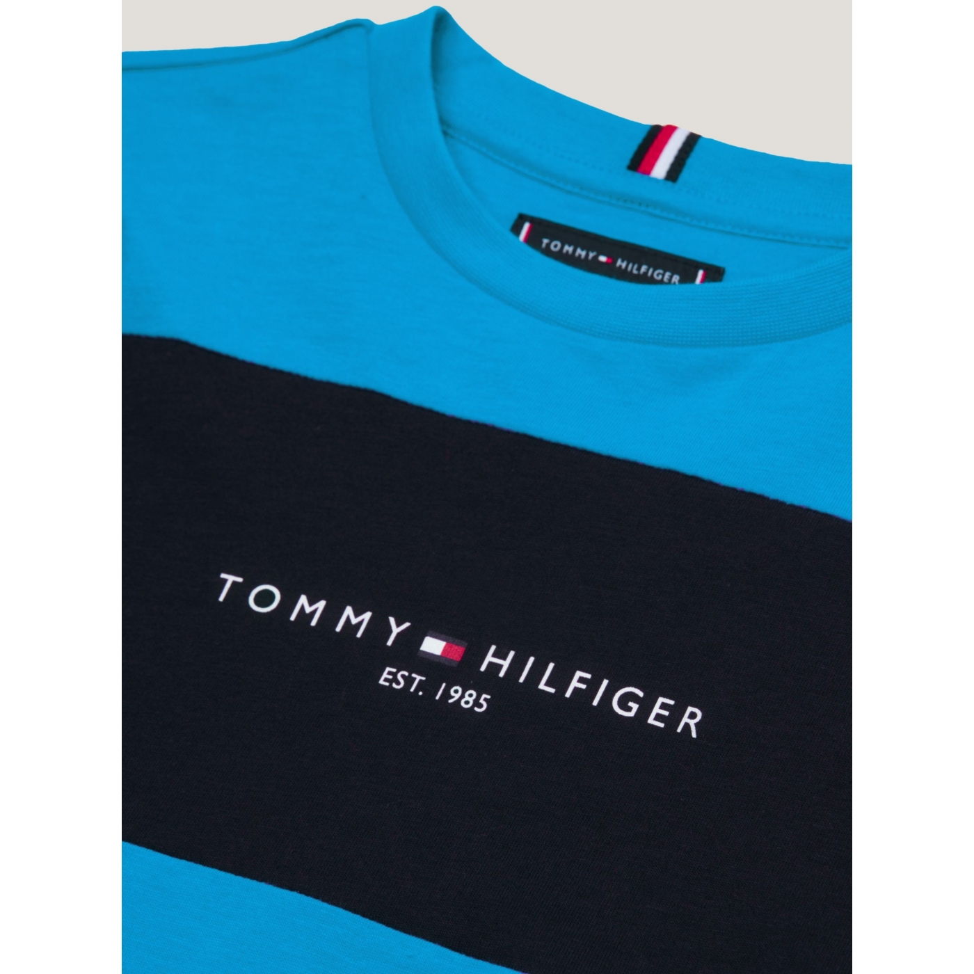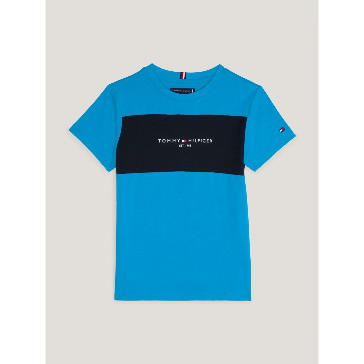 A colour-blocked design on the front of this pure cotton T-shirt highlights the Tommy Hilfiger branding on the chest.